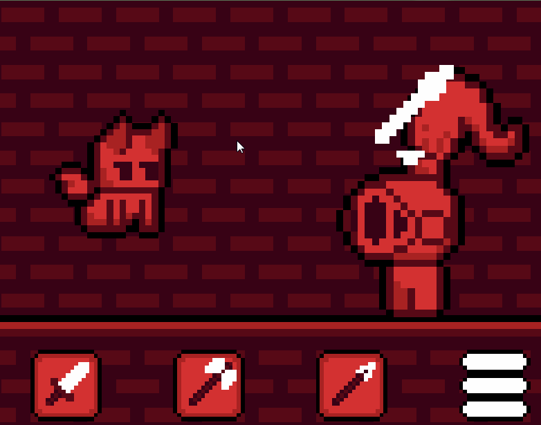 O herói pode trazer 3 armas diferentes sendo elas a espada, o machado e a lança.